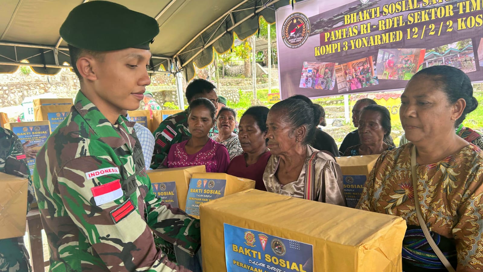 TTU – Satgas Pamtas RI–RDTL Sektor Timur Yonarmed 12 Kostrad melalui jajaran Kompi 3 melaksanakan kegiatan bakti sosial dan pelayanan kesehatan bagi masyarakat Desa Alas, Kecamatan Kobalima Timur. Kegiatan ini digelar dalam rangka menyambut perayaan Natal serta sebagai wujud kepedulian Satgas terhadap kesejahteraan masyarakat di wilayah perbatasan.