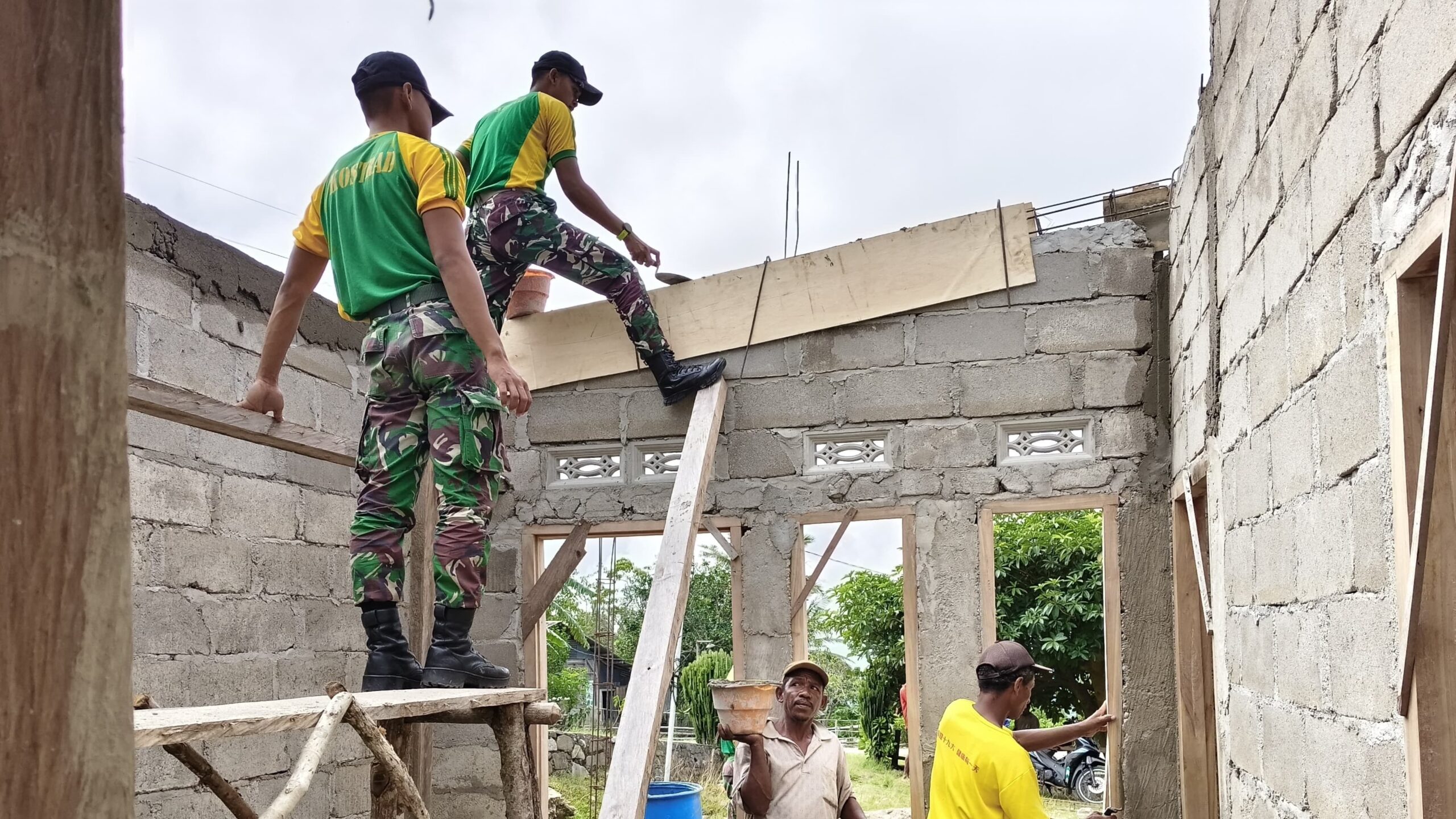 Kegiatan tersebut difokuskan pada pembangunan pondasi atap rumah, di mana personel Pos Ailala bersama masyarakat setempat bergotong royong melakukan proses penyemenan sebagai dasar penopang struktur bangunan. Kebersamaan terlihat jelas saat TNI dan warga saling bahu-membahu demi mempercepat proses pembangunan.