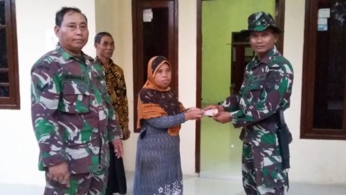 Batang – Dawiyah (52) warga Rt. 3 Rw. 4 Dusun/Desa Durenombo Kecamatan Subah telah menerima ULP (Uang Lauk Pauk) dari anggota Satgas TMMD yang akan tinggal, menumpang makan dan melakukan aktivitas selama 1 bulan kedepan bersama keluarganya. Senin (15/10/18).