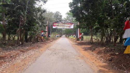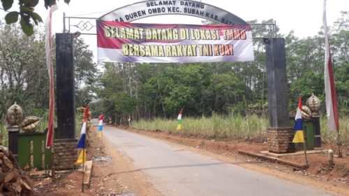 Batang – “Gaba-gaba Megah” Implementasi dari sambutan warga masyarakat Desa Durenombo Kecamatan Subah terhadap pembangunan yang sedang dilaksanakan di desanya diwujudkan dengan pemasangan banner selamat datang di gapura pintu masuk