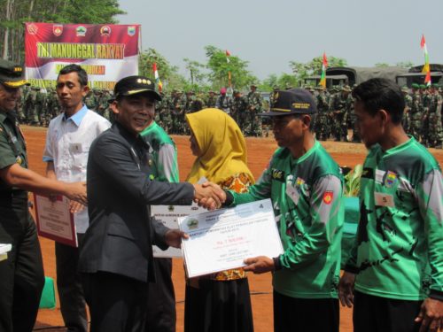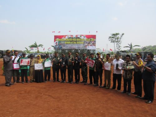 Batang – Bupati, H. Wihaji, S.Ag. M.Pd, menyalurkan bantuan dari Dinas Ketahan Pangan Pemerintah Provinsi Jawa Tengah kepada KWT. Tani Lestari Desa Durenombo, saat pembukaan TMMD Reguler 103 Lapangan Desa Cluwuk Kecamatan Subah. Senin (15/10/18).