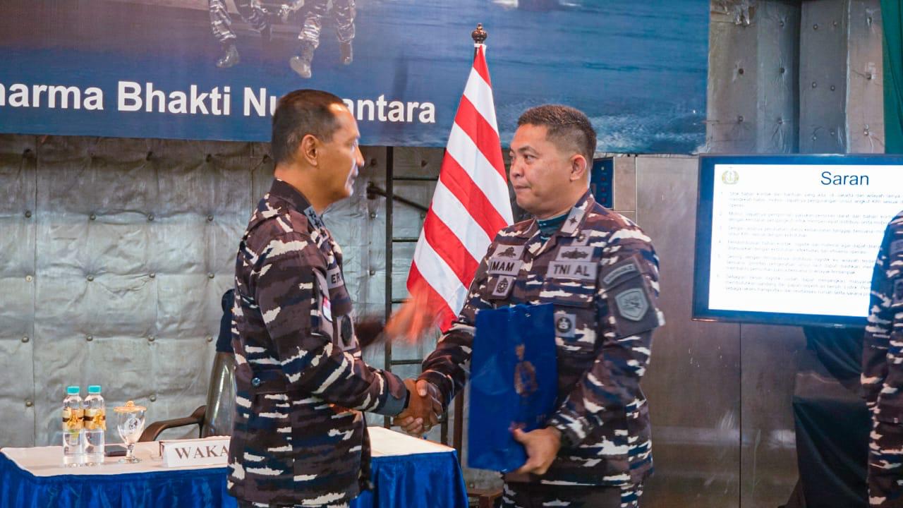 Tak hanya berbicara soal operasional, Wakasal juga mengingatkan para prajurit untuk tetap menjaga kesehatan dan solidaritas. Baginya, secanggih apa pun alutsista yang dimiliki, nyawa dan semangat prajurit adalah aset yang paling berharga bagi negara. Sebagai bentuk perhatian dari pemimpin TNI AL, dalam kesempatan ini Wakasal menyerahkan cenderamata kepada para prajurit yang bertugas di lokasi terdampak bencana alam.