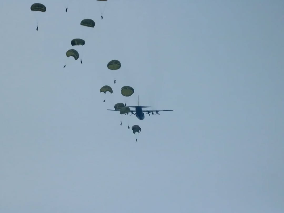 Latihan penerjunan ini menggunakan dua pesawat angkut berat C-130 Hercules. Pesawat A-1328 dari Skadron Udara 32 Malang dan pesawat A-1318 dari Skadron Udara 31 Halim Perdanakusuma, membawa ratusan peterjun. (pendiv2)