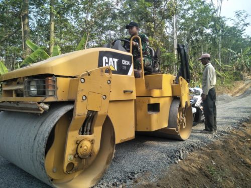 Batang – Terlihat salah satu anggota Kodim 0736 Batang, Serda Citro, membantu tugas Priyanto (42) operator vibro roller dari Dinas Pekerjaan Umum Kabupaten Batang, walaupun seharusnya dalam TMMD Reguler kali ini, Babinsa tersebut tugasnya hanya membangun aspek kemasyarakatan.