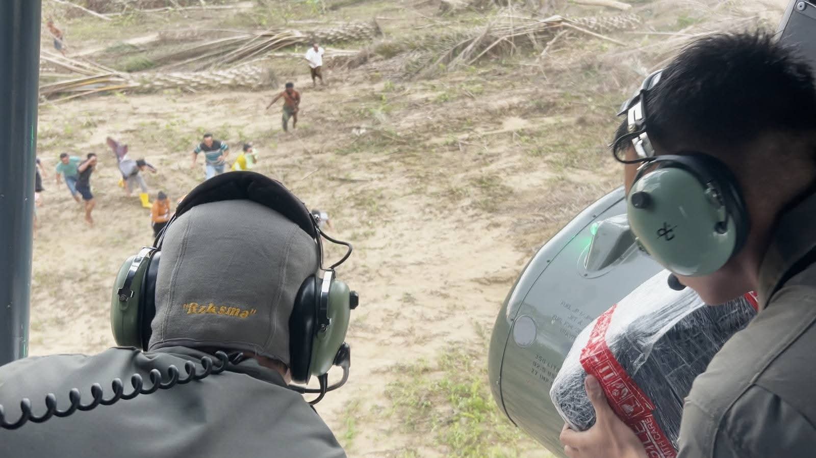 Pengiriman bantuan pada Desember 2025 menggunakan Pesawat Helikopter Cougar H-3217 yang dipiloti oleh Mayor Pnb Surya Mega. Dalam misi tersebut, helikopter membawa bantuan sembako seberat 1.000 kilogram yang berisi kebutuhan pokok bagi warga terdampak, sebagai upaya membantu meringankan beban masyarakat dalam masa tanggap darurat.