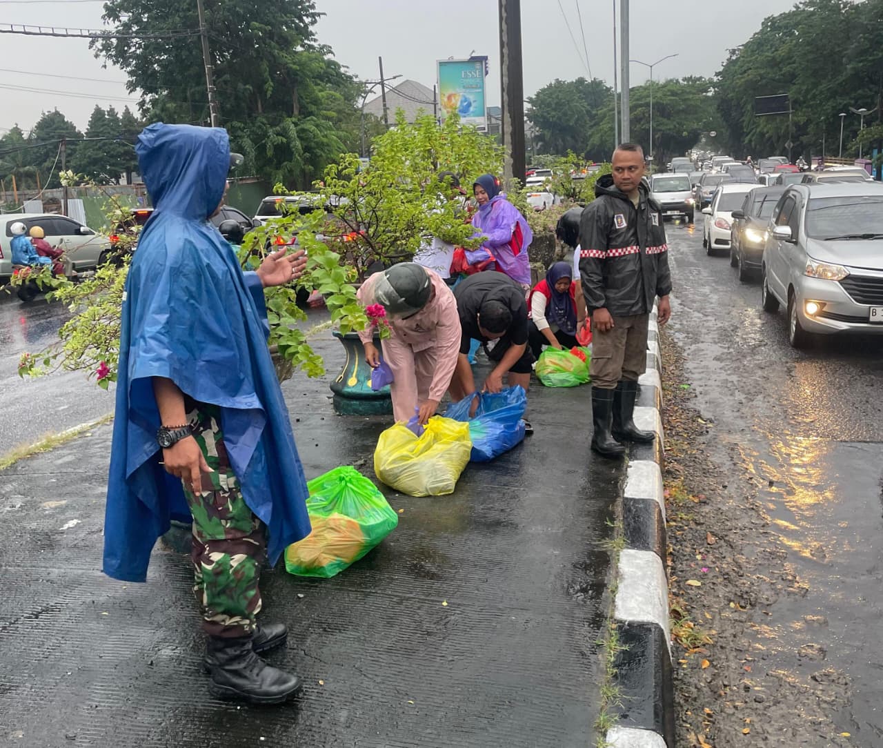 Surabaya – Dengan semangat guyub rukun warga RW15 Kel. Medokan Ayu Kec. Rungkut Kota Surabaya telah membagikan 2.026 Paket Takjil di Jl. Ir. H. Soekarno (Merr Stikom) Surabaya di tiga titik lokasi dengan panitia pembagi sebanyak 30 orang yang di dominasi oleh KSH (Kader Surabaya Hebat) RW15. Paket Takjil tersebut hasil dari swadaya Masyarakat RW15 Kel. Medokan Ayu dan beberapa donasi dari luar wilayah yang berkontribusi kegiatan Bhakti Sosial tahunan tersebut. Minggu sore tepatnya pukul 16:30 15 Maret 2026 sudah bergerak membagikan ke pengendara yang berhenti di lampu merah baik roda dua maupun roda empat ditengah guyuran hujan tanpa pelindung.
