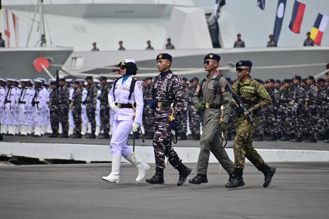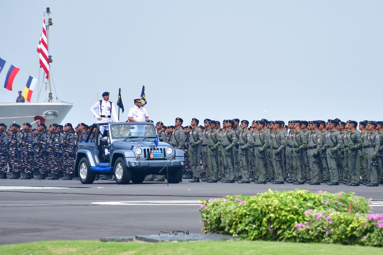 Upacara yang berlangsung di Dernaga Madura ini, diikuti lima Brigade pasukan yang personelnya berasal dari berbagai satuan di jajaran TNI AL, Maritim, Mahasiswa dan Komcad.