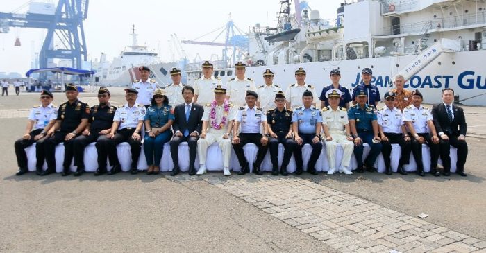PB|Jakarta – Direktur Latihan Bakamla Laksamana Pertama TNI Eko Jokowiyono, S.E., M.Si. menyambut hangat kedatangan Japan Coast Guard (JCG) Commanding Officer of Tsugaru PLH 02 Capt. Suzuki Hirohisa yang baru saja menyandarkan kapalnya, di Dermaga Jakarta Internasional Container Terminal (JICT) 2 Pelabuhan Tanjung Priok, Jakarta Utara, Senin (9/7/2018).