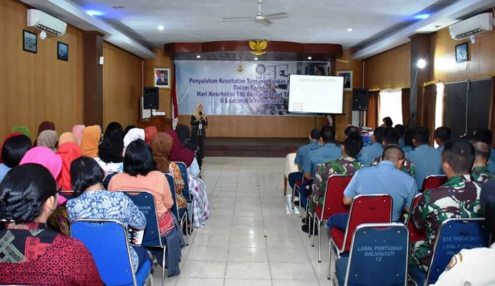 Pontianak – Penyuluhan Kesehatan tentang Kanker dan Tumor dalam rangka Hari Kesehatan TNI Angkatan Laut TH.2018 di selenggarakan Diskes Lantamal XII Gd. Malahayati, Mako Lantamal XII Pontianak Jl. Kom. Yos. Sudarso no. 1 Jeruju Pontianak Kalbar. Selasa (16/10/2018).