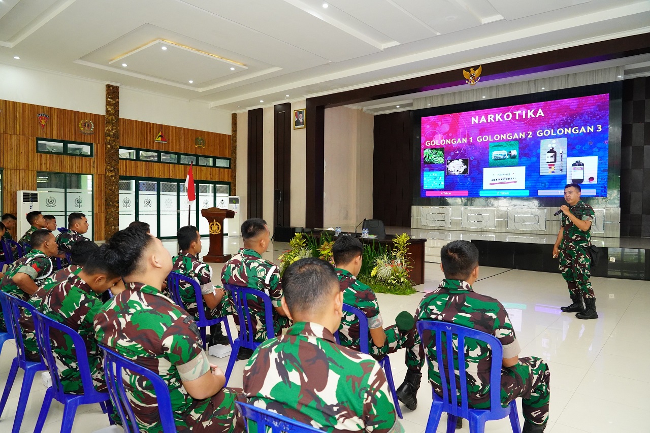 Malang – Dalam rangka memperkuat ketahanan moral dan disiplin prajurit di tengah derasnya arus globalisasi, Divisi Infanteri 2 Kostrad menggelar kegiatan Pencegahan, Pemberantasan, Penyalahgunaan dan Peredaran Gelap Narkoba (P4GN) Semester II TA. 2025. Bertempat di Gedung Sandoyo Madivif 2 Kostrad, kegiatan ini dipimpin langsung oleh Asintel Kasdivif 2 Kostrad dan diikuti oleh 110 personel dari berbagai satuan jajaran, Malang, Selasa (21/10/2025).
