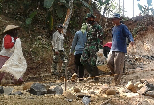 Bahkan dalam pendistribusian material anggota TNI bahu-membahu bersama warga mengangkat material seperti batu menggunakan tangan kosong demi kelancaran proses pembangunan. Hal tersebut dilakukan sebagai upaya me pengentaskan desa tertinggal, dengam sasaran pembangunan akses jalan.