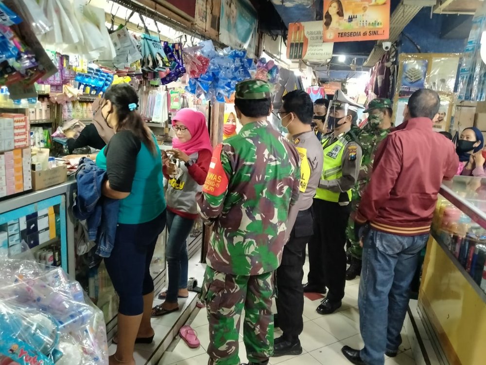 Surabaya – Untuk mengantisipasi dan mencegah penularan virus Corona atau Covid -19 di masyarakat, Koramil Simokerto membagikan masker gratis di pasar kapasan kelurahan Sidodadi Surabaya, minggu (28/06/2020).