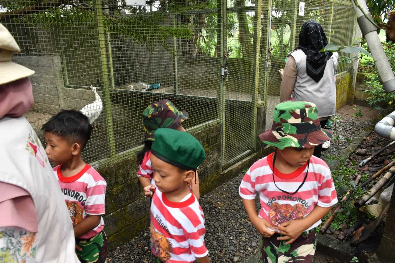 Ponorogo – Para siswa siswi Yayasan Kartika Jaya (YKJ) TK Kartika IV-20 Kodim Ponorogo hari ini melakukan eduwisata ke lokasi Penangkaran Burung Merak Dalem Kerto, Dusun Gentan Desa Ngrupit Kecamatan Jenangan Kabupaten Ponorogo, Selasa (21/10/2025).
