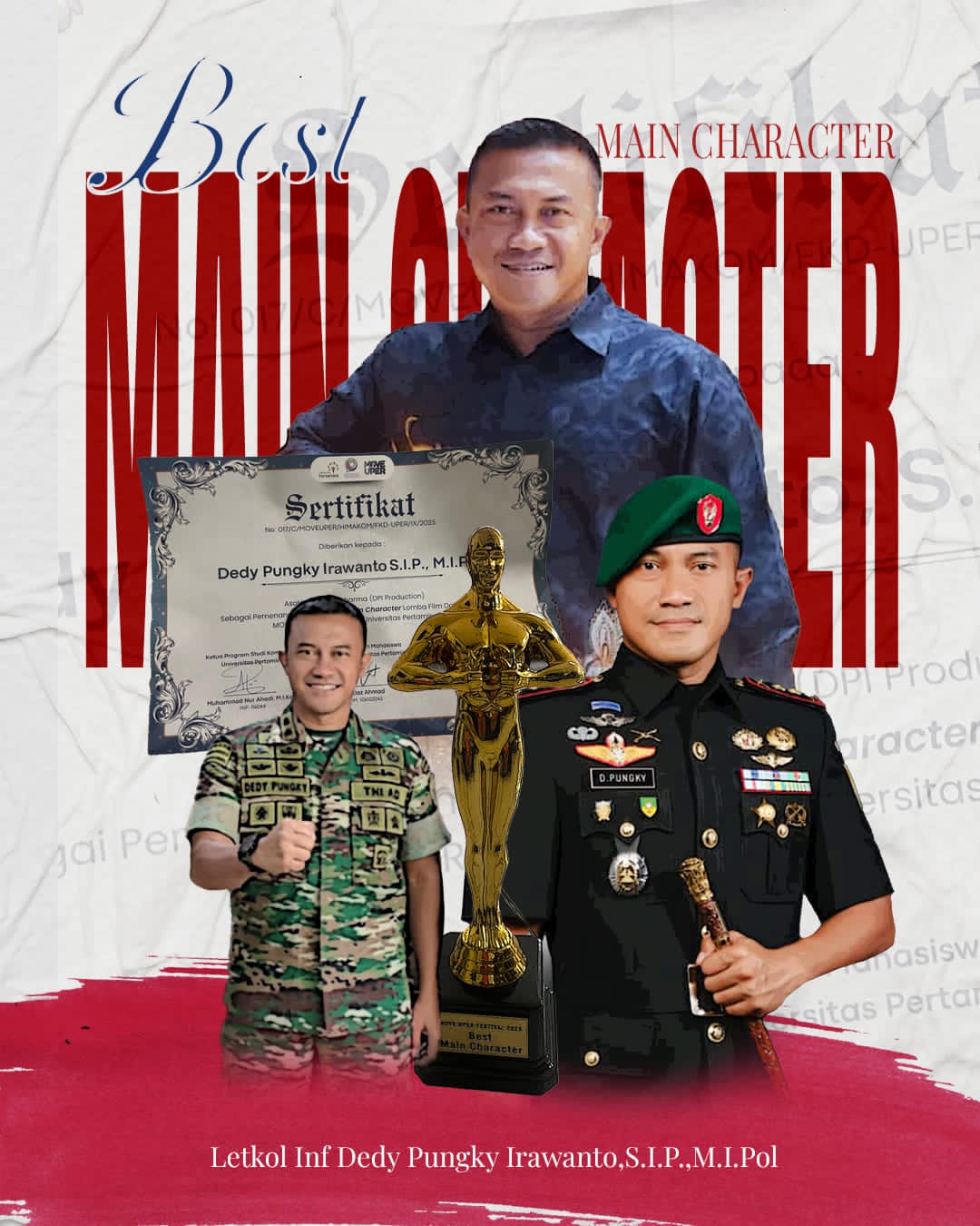 Jakarta -Dua Tahun, Dua karya Film, Dua Prestasi. Kabar membanggakan kembali datang dari Letkol Inf Dedy Pungky Irawanto, S.I.P., M.I.Pol. Kali ini, sosok Dandim penuh inovasi yang dikenal dengan panggilan “BUTE26” ini berhasil menyabet penghargaan sebagai “Best Main Character” di ajang Move Uper Festival 2025 yang digelar di Universitas Pertamina, Jakarta, Sabtu (20/9/2025).