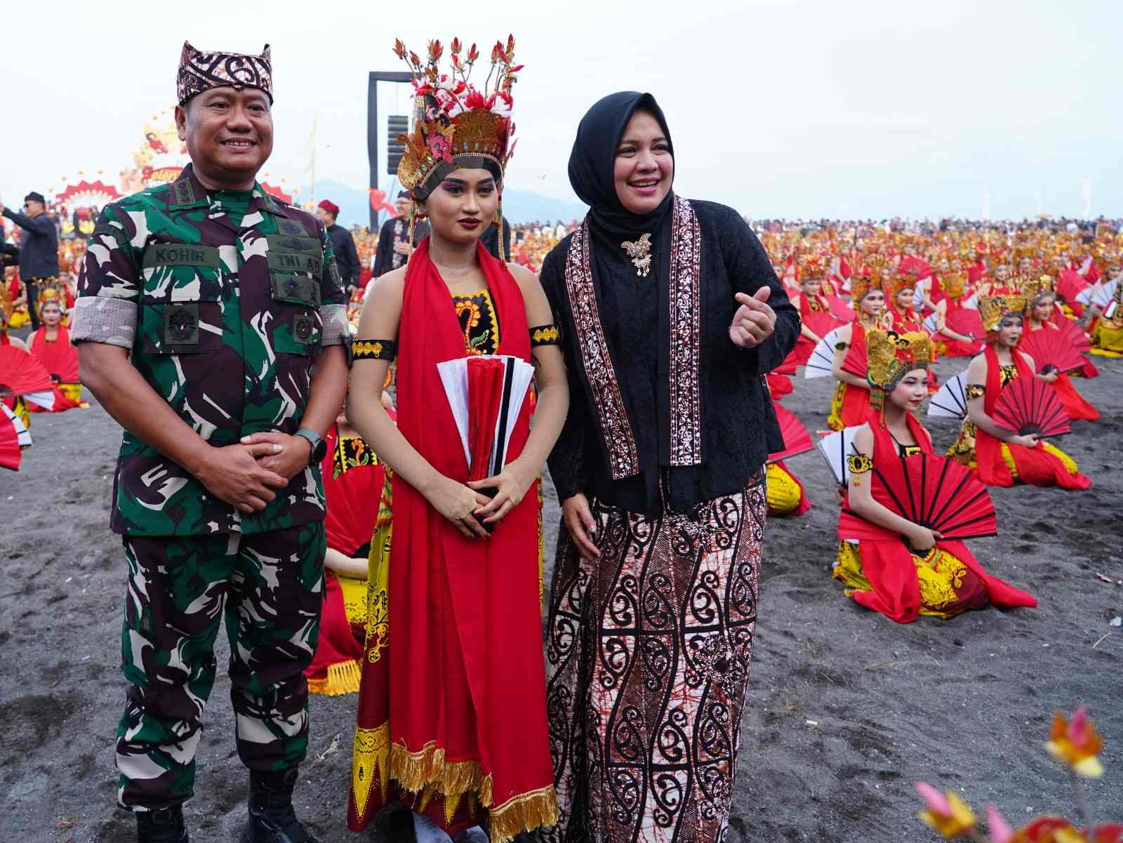 Banyuwangi, Sabtu (25/10/2025) – Komandan Korem 083/Baladhika Jaya Kolonel Inf Kohir bersama Ny. Nilam Kohir, Ketua Persit Kartika Chandra Kirana Koorcab Rem 083 PD V/Brawijaya, menghadiri Festival Gandrung Sewu 2025 di Pantai Boom Marina Banyuwangi.