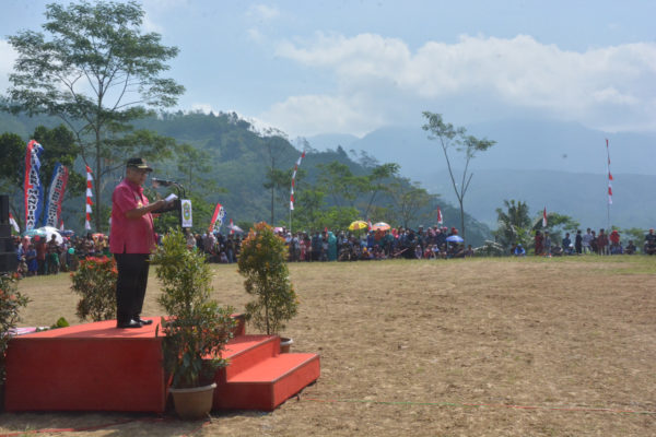 “Ayo kita sengkuyung bareng-bareng program pembangunan yang mensejahterakan masyarakat desa. Bangun desa tanpa meninggalkan kearifan lokal yang dimilikinya. Desane maju, fasilitas pelayanan dasar masyarakate komplet, SDM-nya makin berkualitas, mandiri, punya spirotualitas tinggi, kreatif dan inovatif serta berkarakter kebangsaan yang kuat, dan lestari kebudayaannya”, pungkasnya.