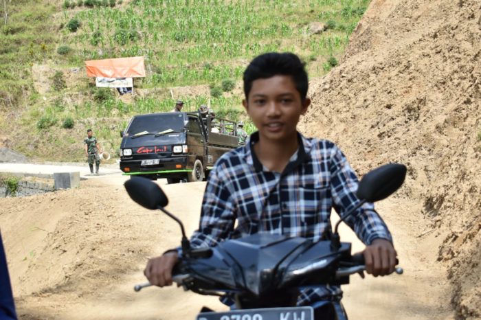 ”Ya Pak saya tahu jalan baru dibangun, saya hanya ingin belajar naik motor dan melihat dari dekat bagaimana tentara bekerja,” cetus Karno.