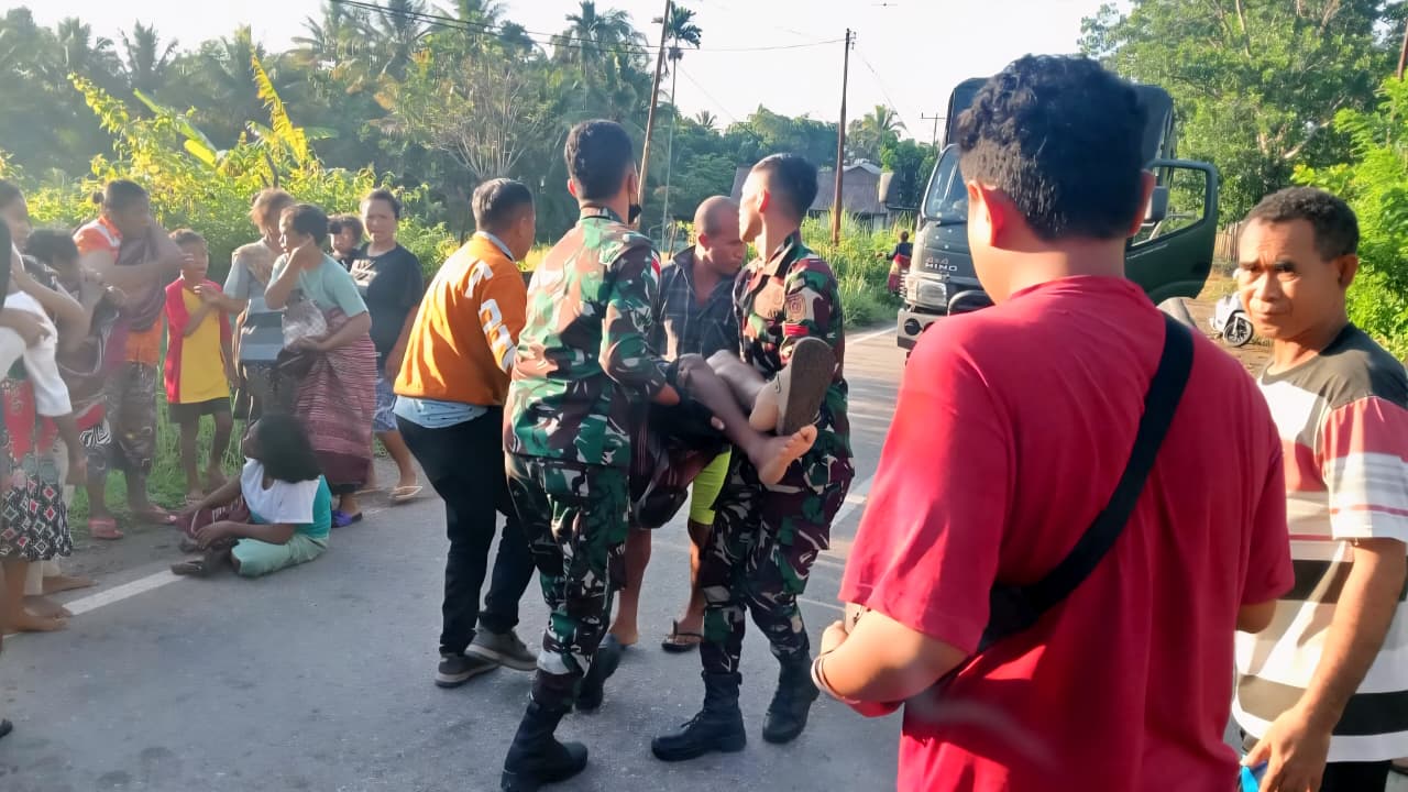 Dalam upaya penyelamatan tersebut, beberapa korban mengalami luka cukup parah. Selain itu, sebagian korban yang sudah berusia lanjut harus dibopong langsung oleh personel Satgas karena kondisinya tidak memungkinkan untuk berjalan. Dengan sigap dan penuh kepedulian, personel Pos Motamasin melakukan penanganan awal sebelum akhirnya membawa seluruh korban menuju fasilitas kesehatan.
