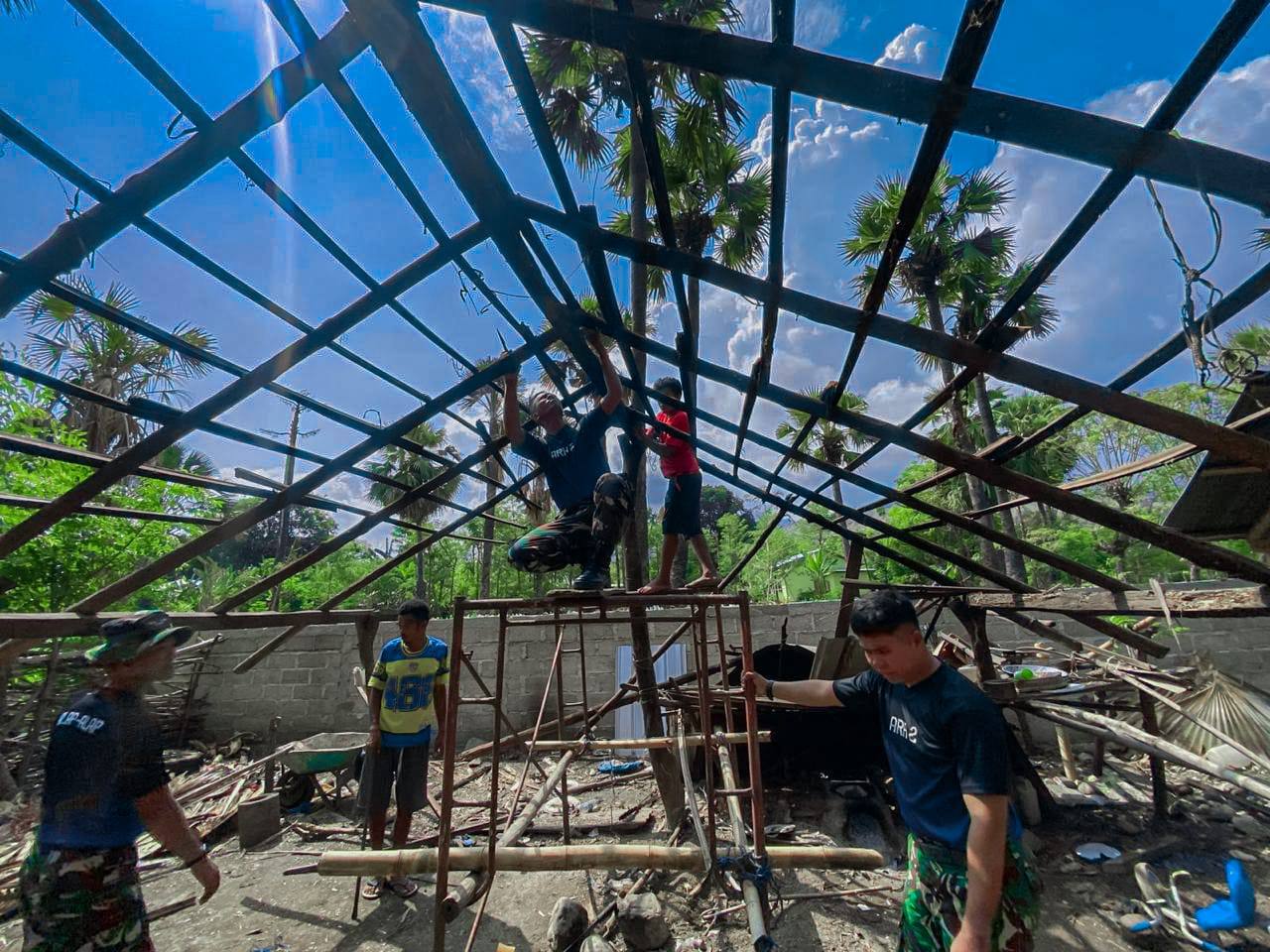 TTU – Wujud kepedulian dan kemanunggalan TNI dengan rakyat terus ditunjukkan oleh Satgas Pamtas RI–RDTL Sektor Barat Yonarhanud 2 Kostrad Pos Wini dengan melaksanakan kegiatan membantu pemasangan atap rumah menggunakan daun lontar milik salah satu warga di Desa Wini, Kecamatan Insana Utara, Kabupaten TTU, Minggu (04/01/2026).