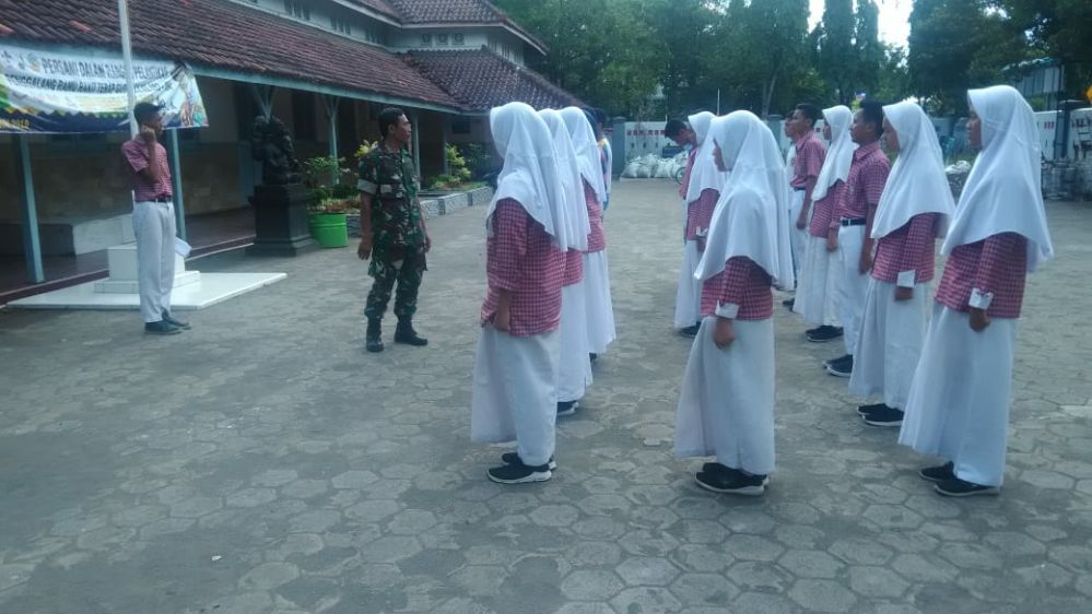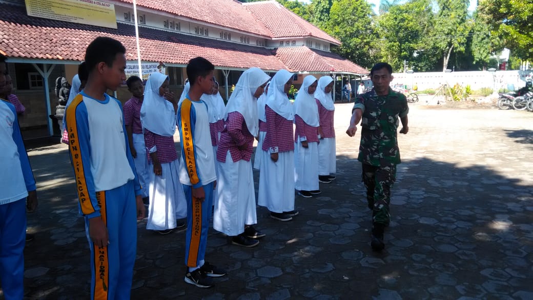 Cilacap – Jelang perlombaan Peraturan Baris Berbaris (PBB) dan Tata Upacara Bendera (TUB) tingkat SLTP se-Kabupaten Cilacap tahun 2019, perwakilan anggota Koramil 01/Cilacap Serma Puryanto, terus gembleng 18 orang Siswa-siswi SMPN 8 Cilacap sebagai binaannya untuk menghadapi perlombaan bergengsi tingkat SLTP tersebut.