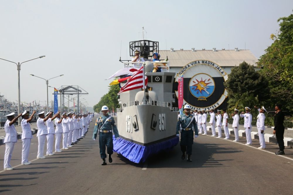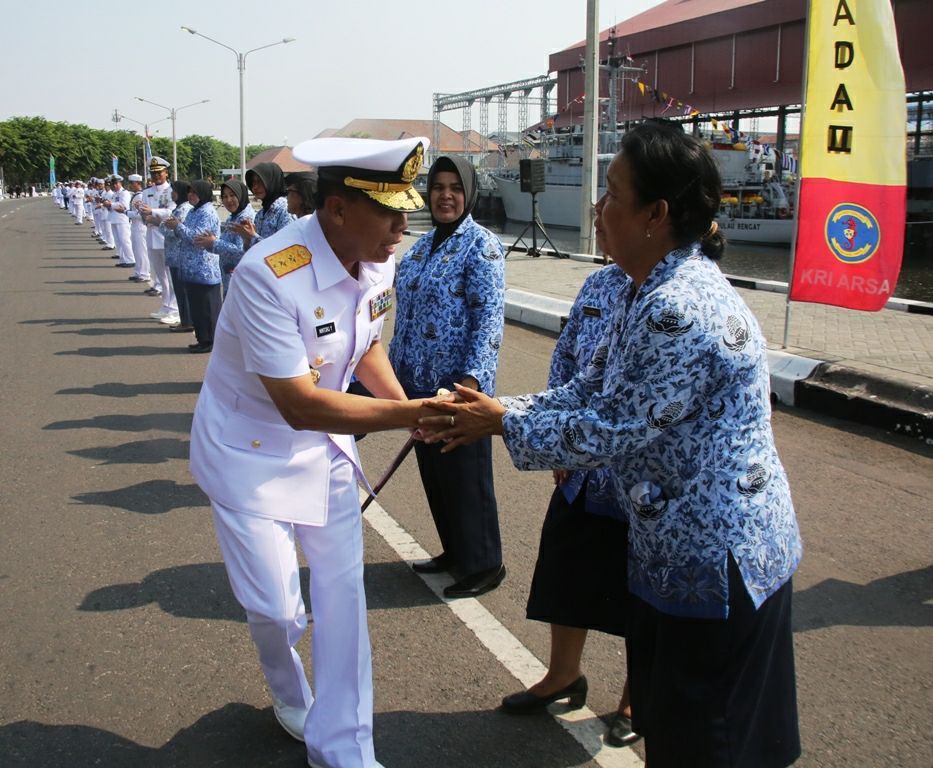 Surabaya – Dalam acara tradisi Farewell sebelum meninggalkan Koarmada II, Laksamana Muda TNI Mintoro Yulianto, S.Sos., M.Si., beserta Ketua Daerah Jalasenastri Armada II Ny. Dien Mintoro Yulianto bersama ribuan Prajurit dan PNS Koarmada II, melepas mantan Pangkoarmada II Laksda TNI Didik Setiyono, S.E., M.M., dan Ny. Retno Didik Setiyono dari Dermaga Madura Koaramada II, Ujung Surabaya. Rabu, (17/10/2018).