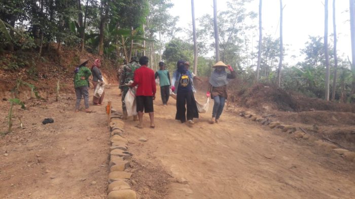 Kondisi di lapangan, sejak Pra TMMD dimulai, selalu ada ibu-ibu yang turut andil menyumbangkan tenaganya membantu penggarap pembangunan jalan makadam sepanjang 400 meter yang digarap dijalan penghubung antara dukuh Durensari dan Durenombo.