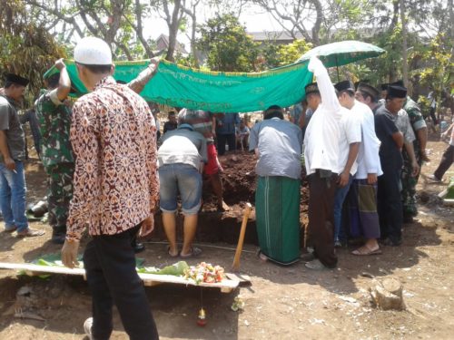 Terlihat di lokasi, Danramil 01 Subah, Kapten Inf Sugito bersama beberapa anggota Satgas TMMD ikut serta mengebumikan almarhum dengan mencangkul tanah untuk menimbun dan anggota Satgas lainya turut membentangkan kain panjang sebagai peneduh petugas penggali makam dan keluarga almarhum yang turun ke lubang galian untuk mengatur posisi jenazah.