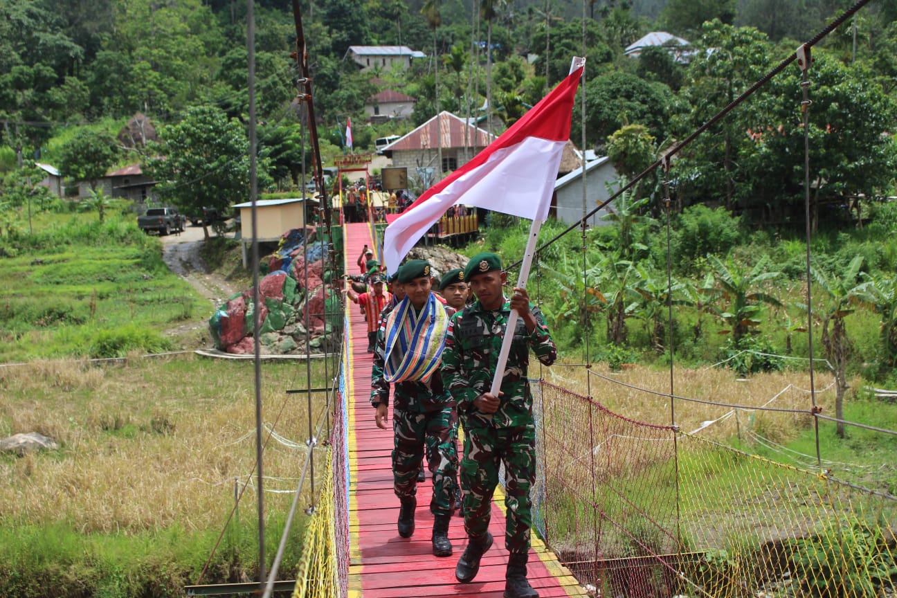 Para perangkat pemerintahan dan warga desa yang hadir sangat memberikan apresiasi dan berterima kasih kepada Satgas Pamtas RI-RDTL Sektor Barat Yonarhanud 2 Kostrad yang telah melakukan rehabilitasi dan pemeliharaan agar jembatan ini dapat dilalui kembali dengan aman. (yonarhanud2)
