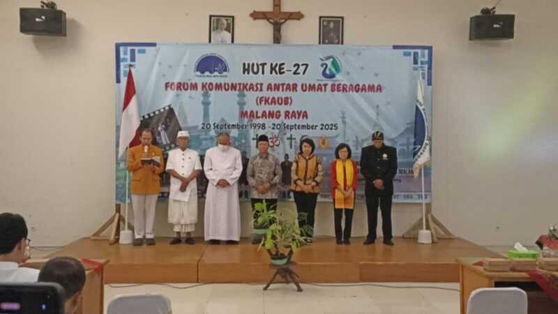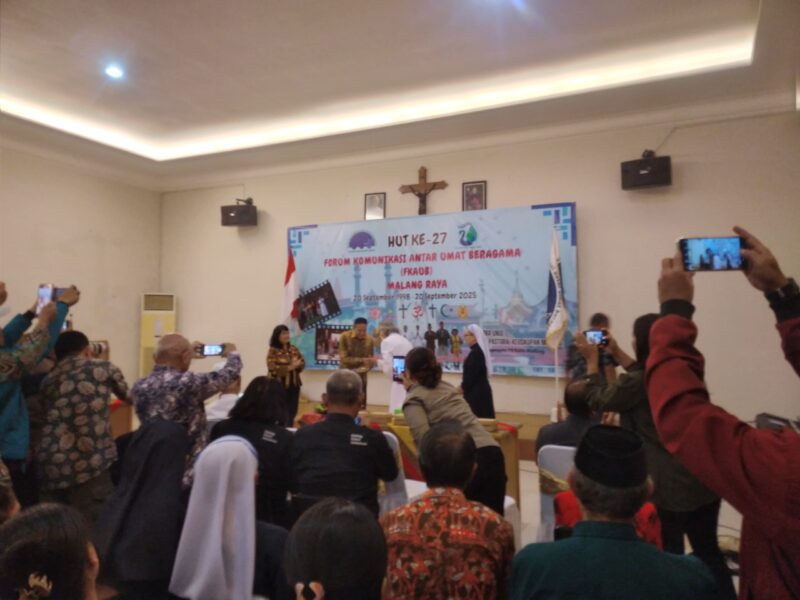 Malang – Dalam rangka memperingati HUT ke-27, Forum Komunikasi Antar Umat Beragama (FKAUB) Malang Raya menyelenggarakan acara ceremony peringatan ulang tahun yang dirangkai dengan pameran foto dan buku tentang moderasi beragama. Diadakan pada Sabtu (20/9/2025).