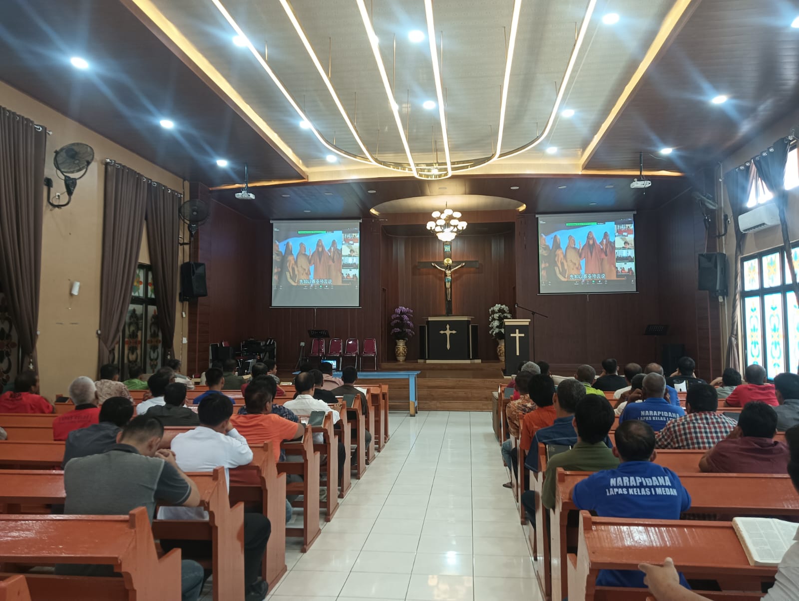 Medan – Dalam rangka memperingati Jumat Agung, Lapas Kelas I Medan mengikuti kegiatan Ibadah Online Jumat Agung yang dilaksanakan secara virtual melalui aplikasi Zoom bersama seluruh Lapas dan Rumah Tahanan Negara se-Indonesia, Jumat (03/04/2026).