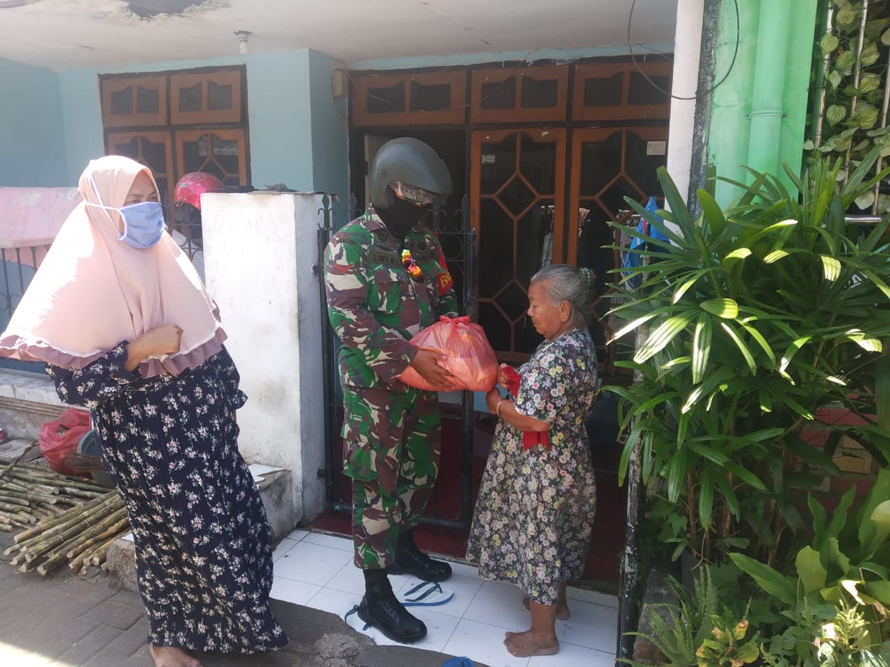 Salah satunya Kali ini Koramil Sukolilo memberikan bantuan paket sembako kepada Ibu Urip (lansia) warga kelurahan medokan Semampir selatan 2A gang Nanas RW II kecamatan Sukolilo, selasa (24/06/2020).