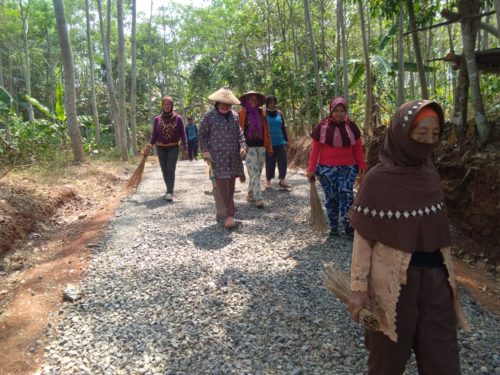Batang – Tiap harinya puluhan ibu-ibu dipastikan datang dari berbagai sudut desa. Mereka selalu hadir meski harus berjalan kaki turun dari berbagai bukit yang tidak dekat jaraknya untuk bergabung dengan Satgas TMMD reguler ke-103 Tahun 2018 maupun warga lainya.