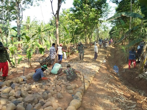 Batang – Pemandangan jalan batu yang takberaturan dan pepohonan yang hijau di Desa Durenombo Kecamatan Subah Batang kini berangsur – angsur berubah menjadi jalan yang bisa dilalui mobil. Karena telah namoak perbedaan siknifikan dari jalan yang dikerjakan satgas TMMD Kodim Batang.