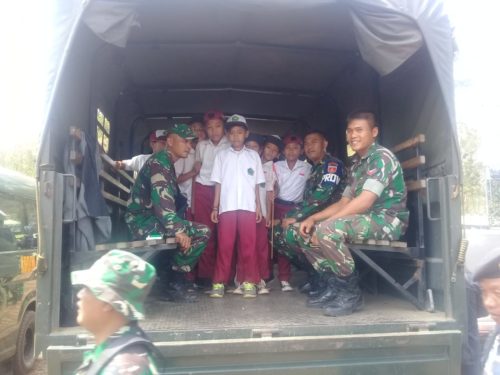 Selain bisa menyaksikan secara langsung bapak TNI dari dekat menurutnya,kesenangan mereka bertambah karena bisa naik truk TNI yang selama ini memang tidak pernah mereka temui apalagi menaikinya. “Kami sangat senang bisa melihat bapak TNI dari dekat, dan bisa naik truk TNI serta berfoto bersama, karena selama ini kami belum pernah naik truk TNI,”ungkap Novi salah seorang pelajar tersebut.