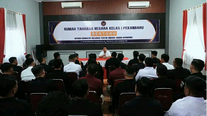 Pekanbaru, — Kepala Kesatuan Pengamanan Rutan (Ka. KPR) Kelas I Pekanbaru, Boni Hasiholan Manullang, memimpin langsung rapat pengamanan yang berlangsung di Aula Rutan Pekanbaru. Kegiatan ini diikuti oleh para komandan regu, staf pengamanan, serta perwakilan petugas jaga dari setiap shift.