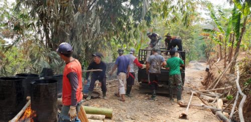 Batang – Pengaspalan ruas jalan tembus atau penghubung sepanjang 2.375 meter di Desa Durenombo siap dikerjakan menyusul material kayu bakar dan aspal sudah mulai didatangkan.