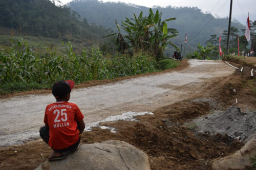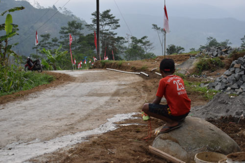 Berdiri diatas batu di tepi rabat beton, tertangkap kamera Serda Rusino, anggota penerangan Kodim 0704 Banjarnegara. Ifan bergumam mengatakan “Dalane alus ngene dibangun tentara, lah kapan rusakke ya,” (Jalannya halus kaya gini dibangun tentara, kapan rusaknya ya – red).