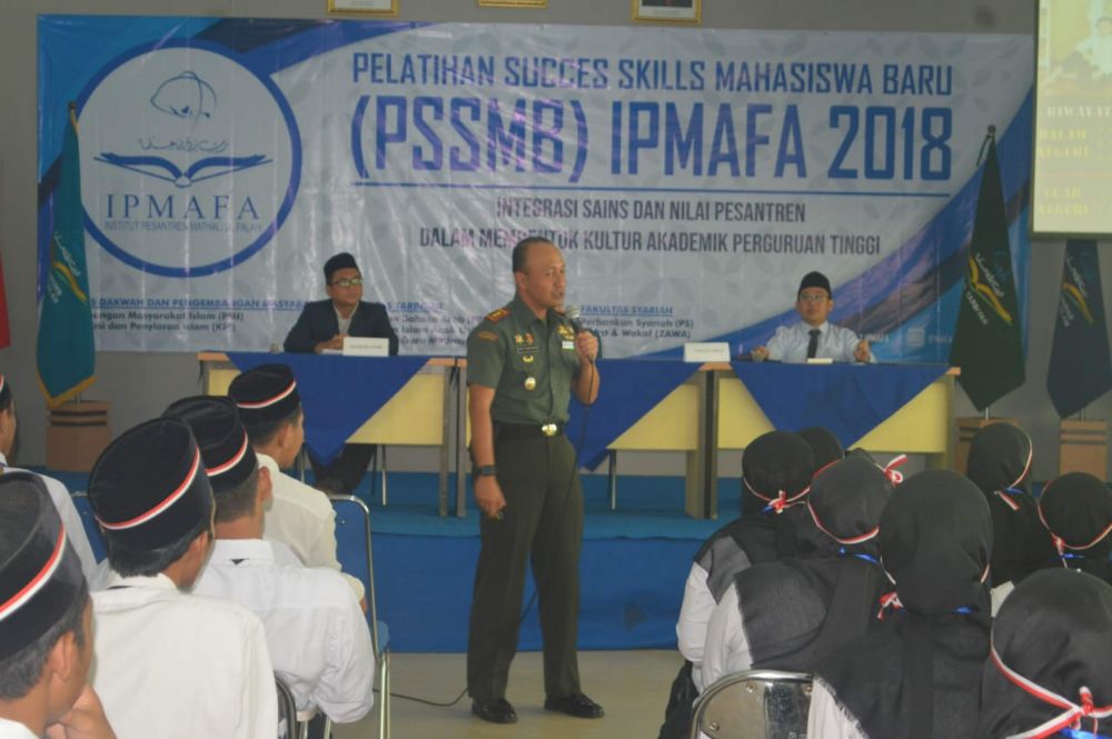 Pati– Bertempat di Kampus IPMAFA, Kecamatan Margoyoso, Kabupaten Pati telah dilaksanakan kegiatan Pelatihan Succes Skills Mahasiswa Baru (PSSMB) IPMAFA2018 oleh Dandim 0718/Pati dengan tema Wawasan Kebangsaan yang diikuti 310 orang. Senin, (27/08/218).