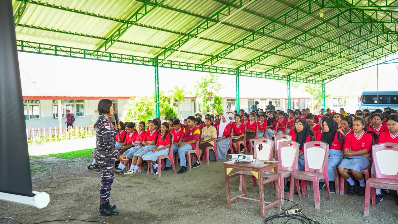 Tim Panitia sosialisasi Kodaeral IX yang terdiri dari perwira muda berbakat, Letda Laut (KH) Gustian Nandito Irawan dan Letda Laut (K/W) dr. Gina Melawati Agustina beserta anggota lainnya menyasar jantung pesisir Seram Bagian Barat, tepatnya di SMAN 1 Kairatu dan SMAN 22 Seram Barat.