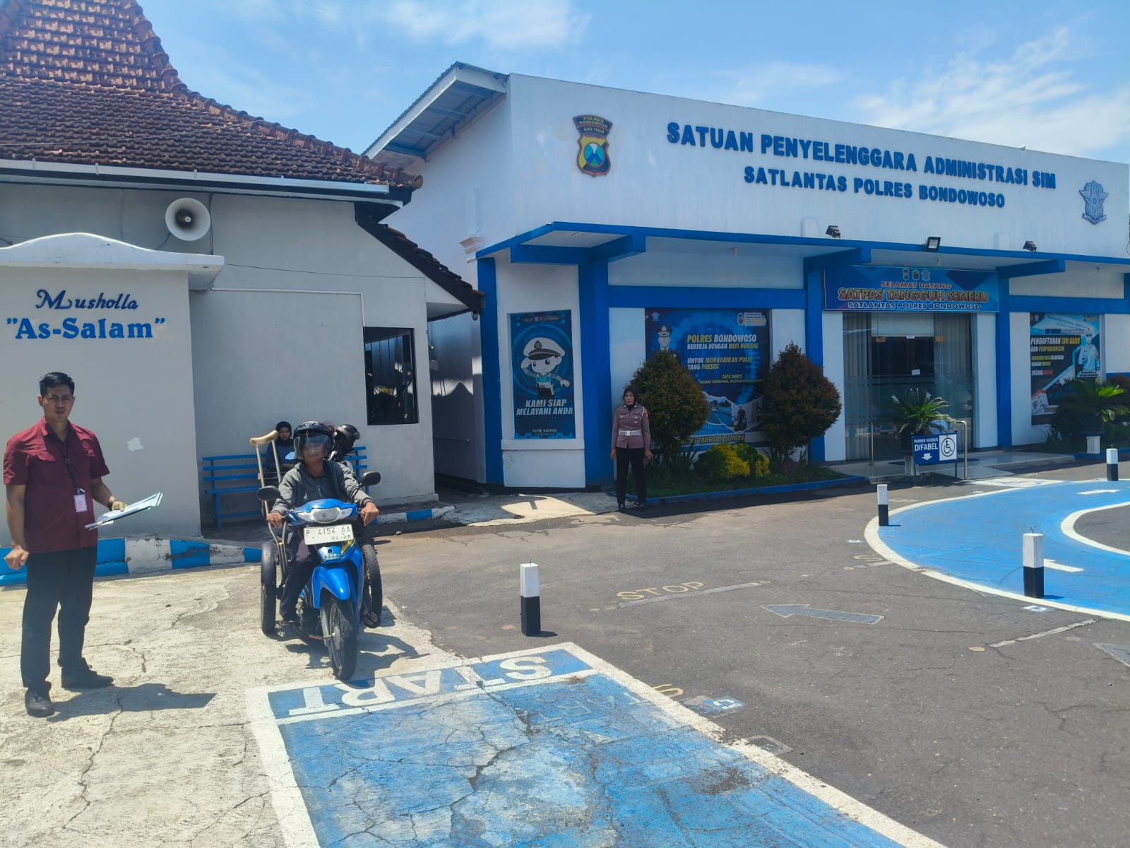 Seperti warga Bondowoso ini bernama Jati tinggal di Pancoran Kecamatan Kota Bondowoso, sosok pria difabel ini yang kesehariannya berjualan roti. Memperpanjang Sim D nya di Satpas Polres Bondowoso mengikuti ujian praktek dan lulus dengan sempurna.