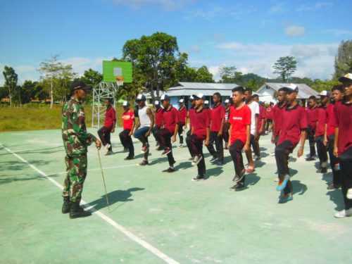 PB | Keerom – Kemeriahan dalam rangka menyambut HUT Ke-71 Republik Indonesia sudah mulai terlihat di wilayah Distrik Mannem Kab. Keerom Papua. Salah satu kegiatan yang sedang dipersiapkan dalam rangka acara puncak peringatan HUT Ke-71 Republik Indonesia adalah Pasukan Pengibar Bendera atau lebih dikenal dengan Paskibra. Dalam rangka mensukseskan acara puncak tersebut Satgas Yonif Mekanis 516/CY melaksanakan pembinaan generasi muda melalui kegiatan Paskibra di SMPN 05 Arso. Rabu (03/08).