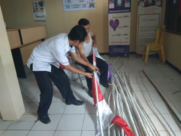 Durohim (64) Perangkat Desa Karangjambu yang sehari-harinya bekerja di Kantor Desa, terlihat mulai menyiapkan umbul-umbul untuk persiapan acara Kunker Tim Wasev Mabesad sekaligus penutupan TMMD, dirinya juga dibantu Suyitno (32) warga Rt. 15 rw. 05 yang juga Plt. Sekdes Karangjambu.