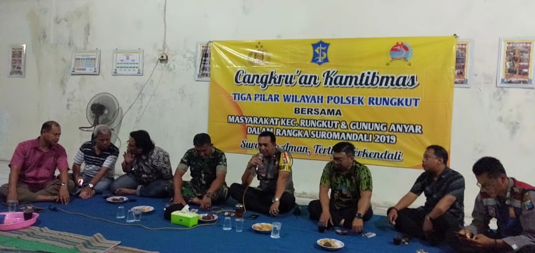 Surabaya – Pada hari Rabu malam 20/02/2019 cangkruk’an kamtibmas tiga pilar plus kelurahan Medokan Ayu telah dihadiri beberapa tokoh masyarakat dan tokoh agama setempat selain pejabat pemerintah kota dan TNI-POLRI yang selalu bersinergi setiap hari demi mempertahankan NKRI di wilayah masing-masing.