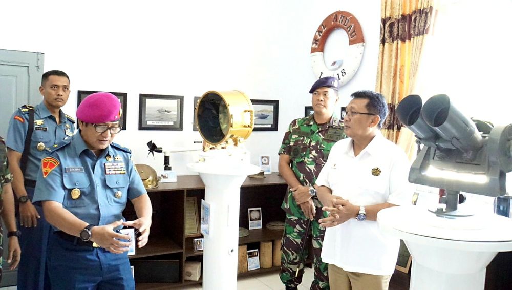 Satu persatu ruangan yang ada di museum tersebut dikunjungi oleh Perwira tinggi berpangkat Bintang Satu di Jajaran TNI AL tersebut.