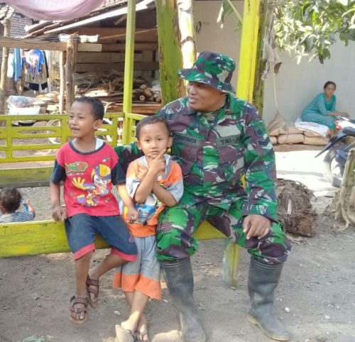 Seperti yang dilakukan Sertu Sugiyanto di Dukuh Durensari Desa Durenombo Kecamatan Subah Kabupaten Batang, siang tadi sebelum memulai kegiatan lagi. Ia mengajak anak – anak bermain dan sesekali bercengkrama dengannya. “Dengan cara ini saya bisa mengurangi rasa rindu kepada keluarga terutama anak saya yang masih kecil”, ungkapnya.