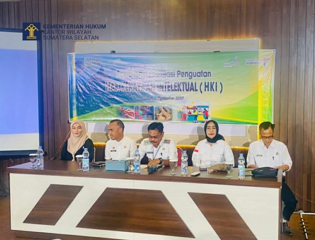 Lahat — Kantor Wilayah Kementerian Hukum (Kanwil Kemenkum) Sumatera Selatan, melalui Divisi Pelayanan Hukum, menggelar Sosialisasi Fasilitasi Penguatan Kekayaan Intelektual di Cafe Hungrypedia Lahat, Rabu (3/9). Acara ini bertujuan untuk meningkatkan pemahaman para pelaku usaha mikro, kecil, dan menengah (UMKM) serta seniman di Kabupaten Lahat tentang pentingnya perlindungan kekayaan intelektual (KI).