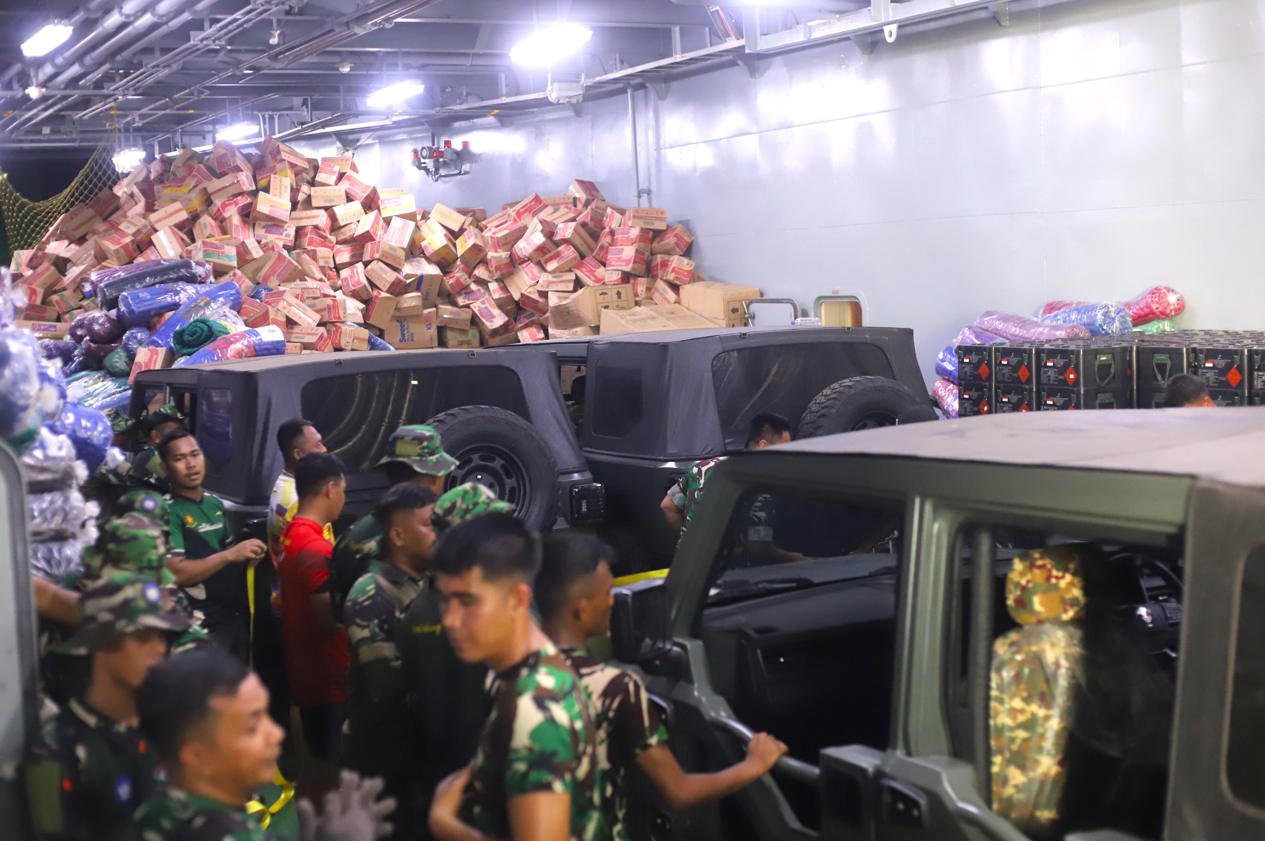 Belawan – Kapal ADRI–XVII BM yang mengangkut bantuan logistik dari Markas Besar TNI Angkatan Darat (Mabesad) tiba di Pelabuhan Belawan, Minggu (7/12/2025). Bantuan tersebut siap disalurkan kepada masyarakat terdampak bencana di wilayah Tapanuli, Provinsi Sumatera Utara.