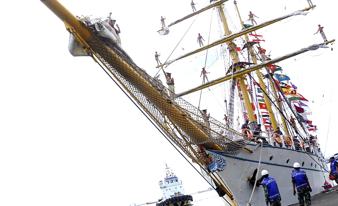 Kapal yang sudah dihiasi bermacam bendera negara tersebut kini sudah sandar di Makassar dan siap dikunjungi masyarakat kota Makassar.