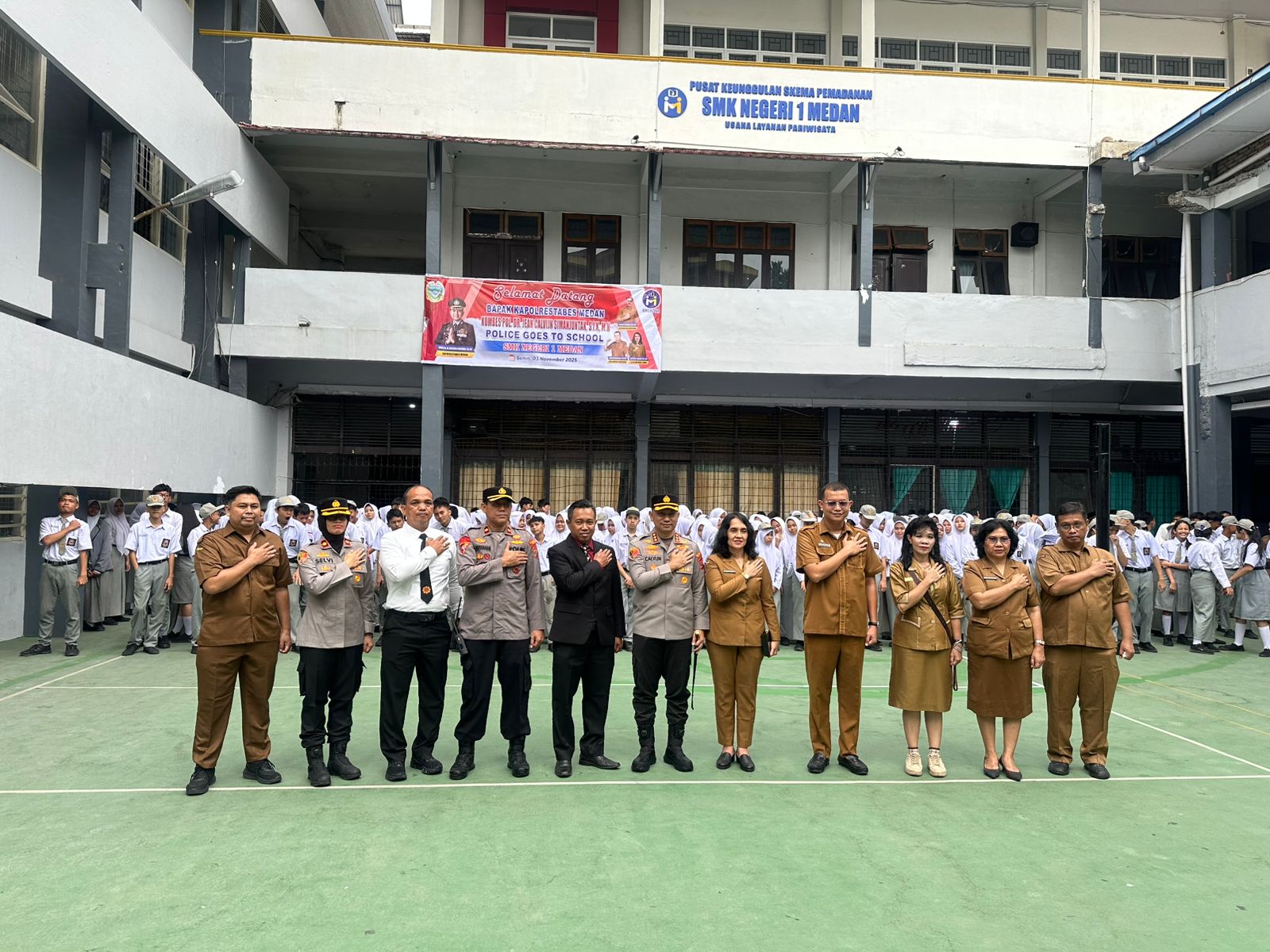 Medan — Kapolrestabes Medan Kombes Pol Dr. Jean Calvijn Simanjuntak, S.I.K., M.H., memimpin langsung kegiatan upacara bendera di SMK Negeri 1 Medan, Jalan Sindoro, Kecamatan Medan Kota, Senin (3/11/2025) pagi. Kegiatan ini merupakan bagian dari program pembinaan dan edukasi Kapolrestabes Medan kepada pelajar untuk memperkuat karakter, kedisiplinan, dan kesadaran hukum di kalangan generasi muda.
