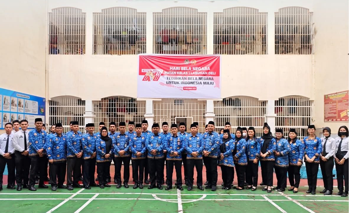 Labuhan Deli — Rumah Tahanan Negara (Rutan) Kelas I Labuhan Deli melaksanakan Upacara Peringatan Hari Bela Negara Ke-77 Tahun 2025 dengan penuh khidmat, pada Jumat, 19 Desember 2025, bertempat di lapangan blok hunian Rutan Kelas I Labuhan Deli.